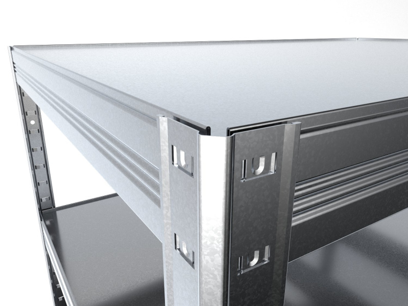 - veľmi stabilná konštrukcia, regálové rámy sú zvárané