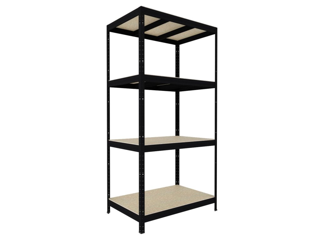 Bezskrutkový regál Biedrax 35 x 120 x 180 cm, čierny, 4 police OSB 10 mm, nosnosť 200 kg na policu