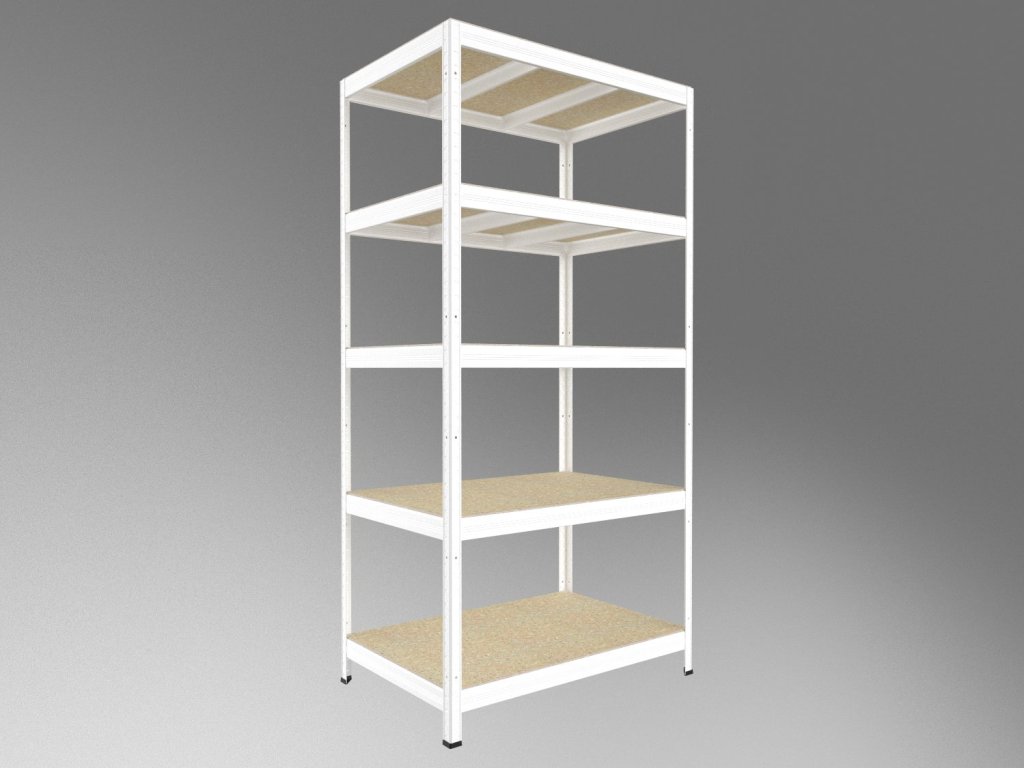 Bezskrutkový regál Biedrax 35 x 120 x 210 cm, biely, 5 políc OSB 10 mm, nosnosť 200 kg na policu