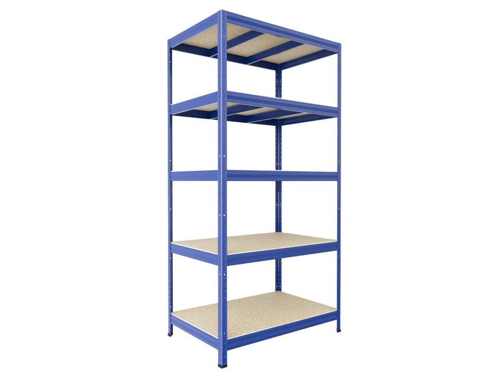 Bezskrutkový regál Biedrax 35 x 120 x 210 cm, modrý, 5 políc OSB 10 mm, nosnosť 200 kg na policu