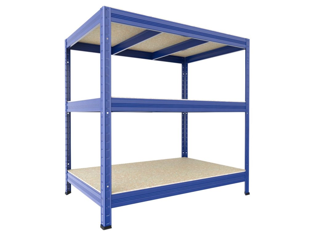 Bezskrutkový regál Biedrax 35 x 120 x 90 cm, modrý, 3 police OSB 10 mm, nosnosť 200 kg na policu
