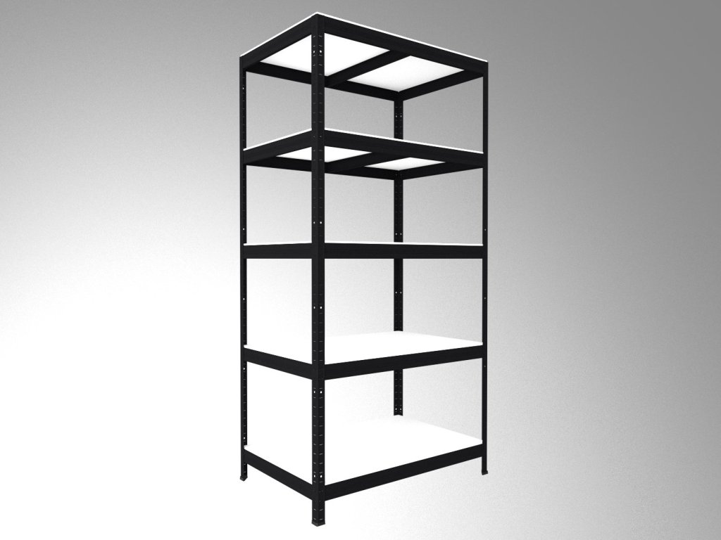 Bezskrutkový regál Biedrax 35 x 60 x 180 cm, čierny, 5 políc biele lamino 12mm, nosnosť 200 kg na policu