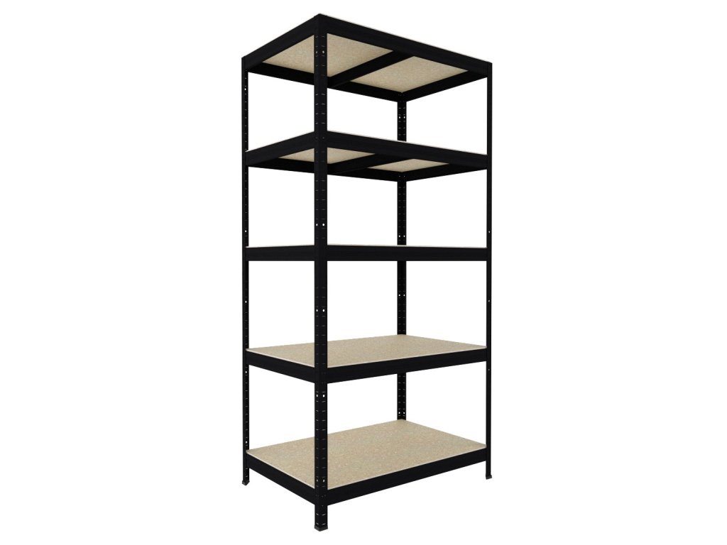 Bezskrutkový regál Biedrax 35 x 60 x 180 cm, čierny, 5 políc OSB 10 mm, nosnosť 200 kg na policu