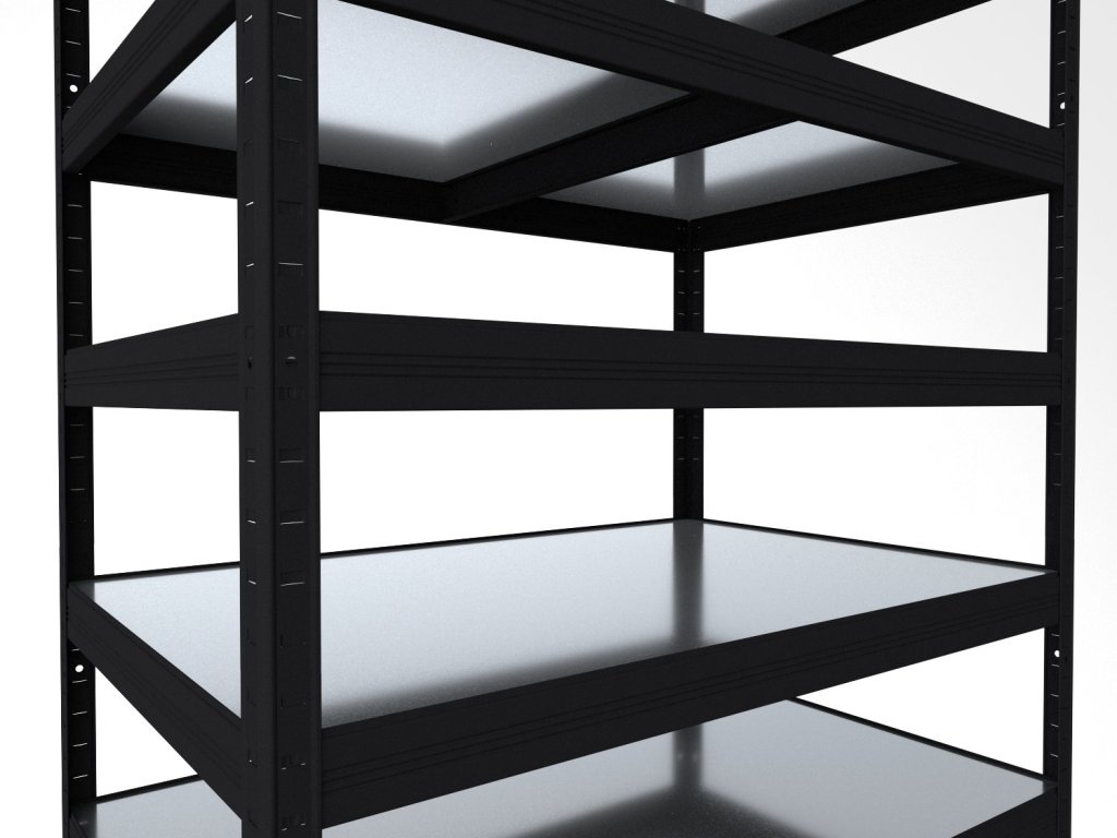 Bezskrutkový regál s pozinkovanými plechovými policami, ktoré sú odolné, umývateľné a vhodné aj do vlhkého prostredia ako sú pivnice, garáže alebo skleníky. Unikátny bezskrutkový systém zaručuje rýchlu montáž a vysokú stabilitu. Police sú navyše chytro zapustené do nosníkov, čím vzniká praktický 4mm okraj, ktorý bráni vypadnutiu uložených predmetov.