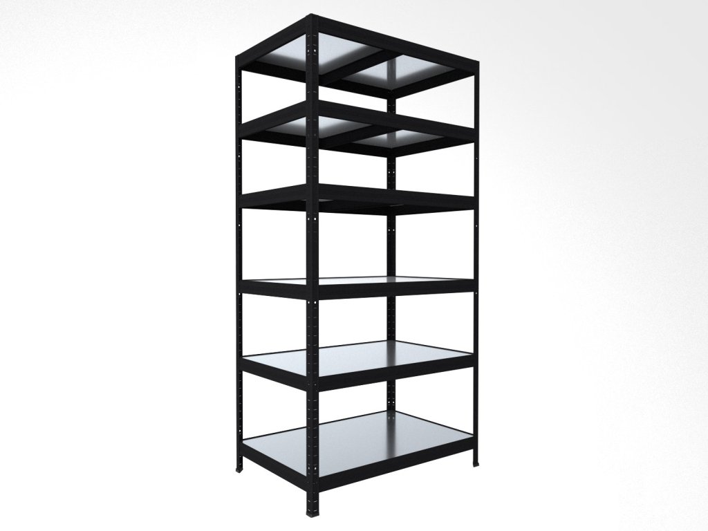Bezskrutkový regál Biedrax 35 x 60 x 180 cm, čierny, 6 políc plech zinok, nosnosť 150 kg na policu