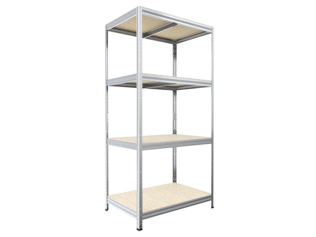 Bezskrutkový regál Biedrax 35 x 60 x 180 cm, pozink, 4 police OSB 10 mm, nosnosť 200 kg na policu