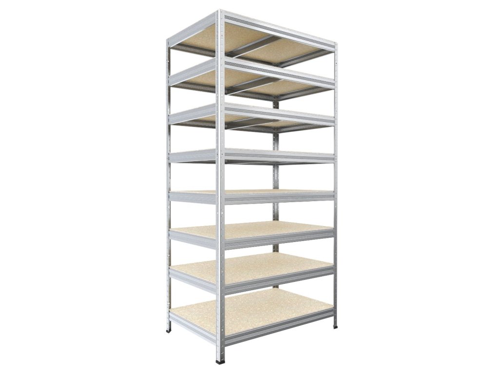 Bezskrutkový regál Biedrax 35 x 60 x 210 cm, pozink, 8 políc OSB 10 mm, nosnosť 200 kg na policu