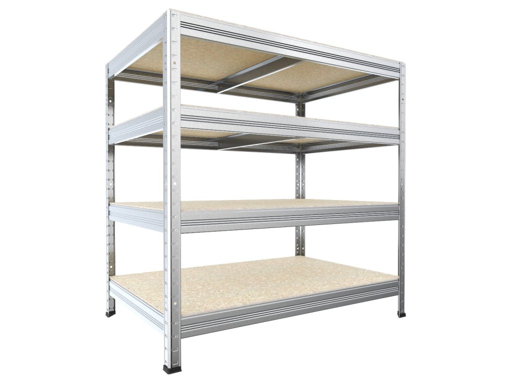 Bezskrutkový regál Biedrax 35 x 60 x 90 cm, pozink, 4 police OSB 10 mm, nosnosť 200 kg na policu