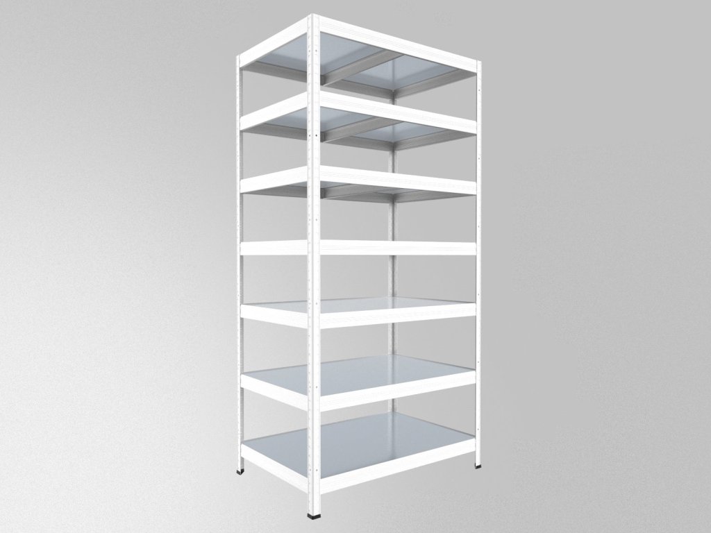 - PROSÍM POZOR - kovové stojky, nosníky a výstuhy sú lakované vypalovacou práškovou farbou biela RAL9003. Ale police sú vyrobené z pozinkovaného plechu 0,8 mm, nie sú lakované práškovou farbou, jedná sa o pozinkovaný strieborný plech