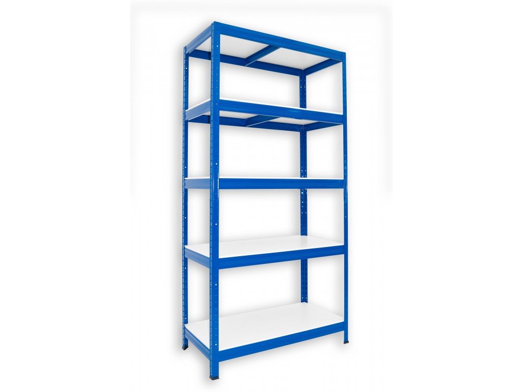 kovový regál bezskrutkový Biedrax 50 x 60 x 180 cm, modrý - 5 políc biele lamino 12mm