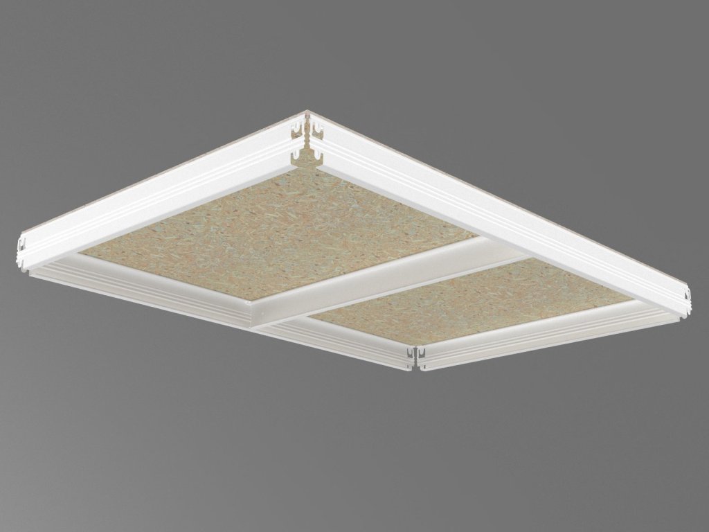- Balenie obsahuje jednu kompletnú policu (poschodie), ako je vyobrazená na prvom obrázku hore v galérii: sadu nosníkov, výstuhu a OSB policu 10 mm. Všetko potrebné na montáž jednej police.