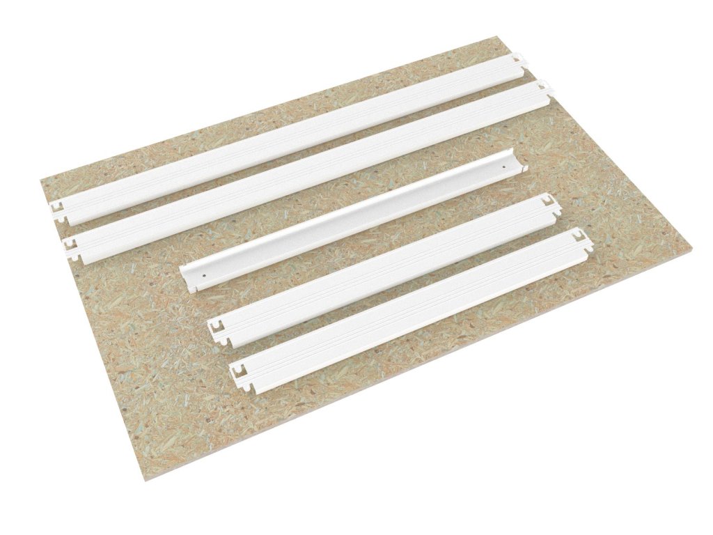 - Materiál políc: drevotrieska OSB 10 mm