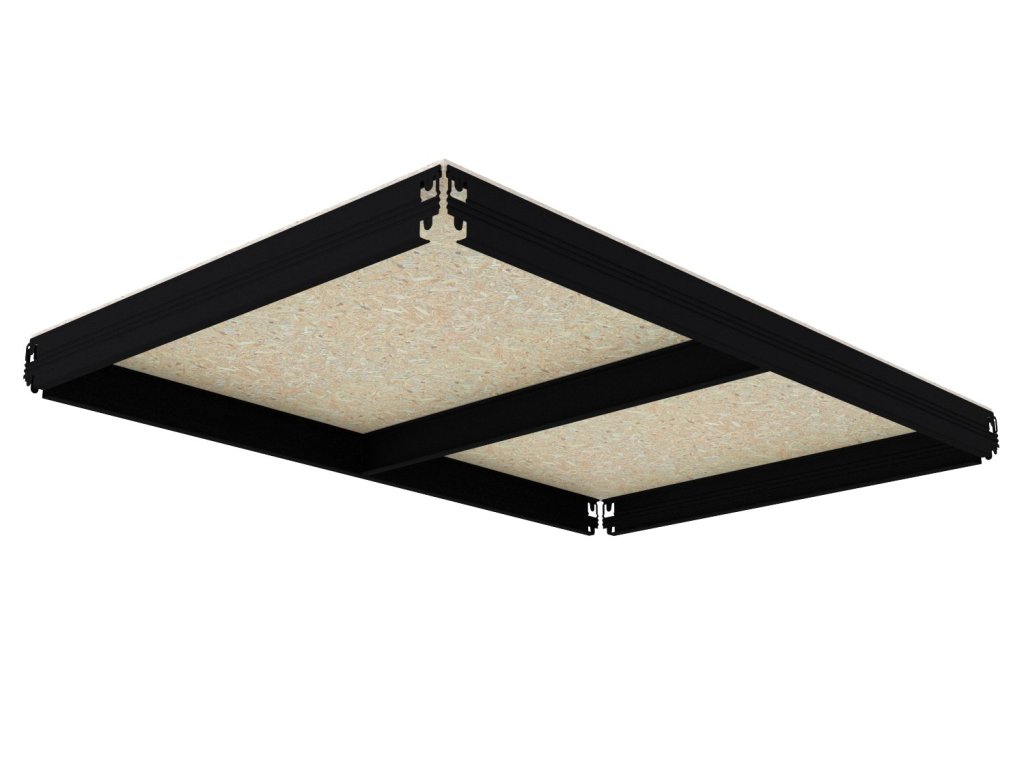 - Balenie obsahuje jednu kompletnú policu (poschodie), ako je vyobrazená na prvom obrázku hore v galérii: sadu nosníkov, výstuhu a OSB policu 10 mm. Všetko potrebné na montáž jednej police.