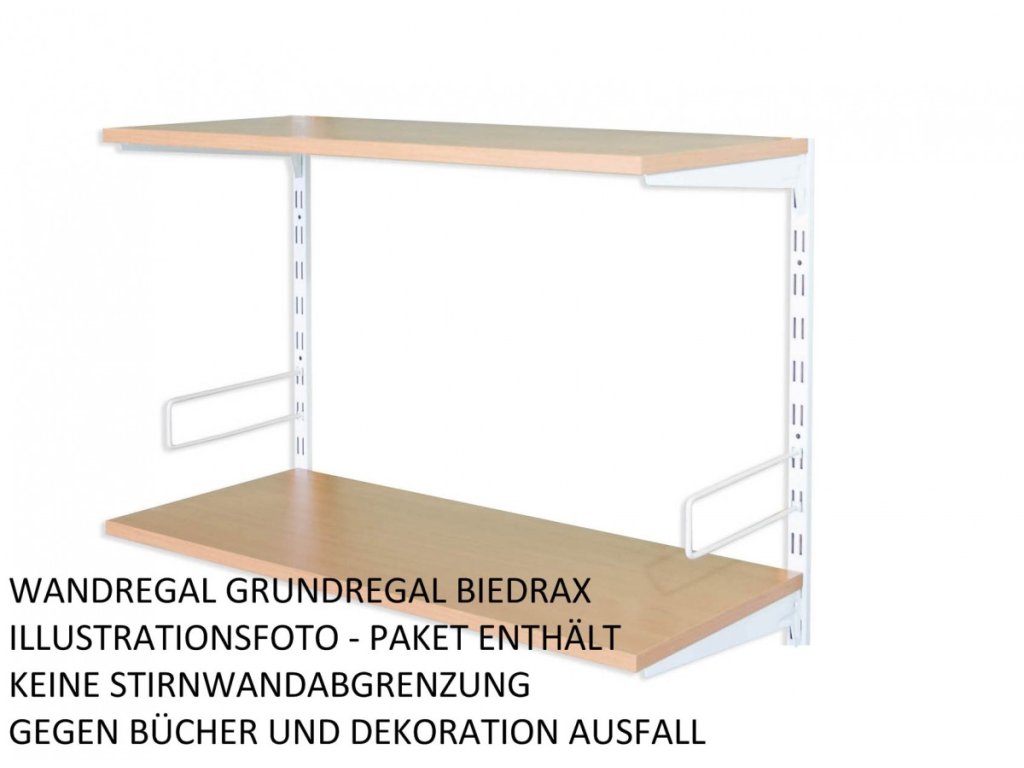 - Obsah balenia prídavný regál: 1 kovová nástenná lišta, kovové nosníky pod policu, polica drevotrieska lamino 18 mm, skrutky pre pripevnenie políc k nosníkom