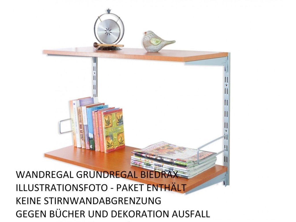 Nástenné regály základné obsahujú dve stojky (lišty na stenu). Ak potrebujete jeden samostatne visiaci regál šírky 40 cm, 60 cm alebo 80 cm - vyberte tento typ.