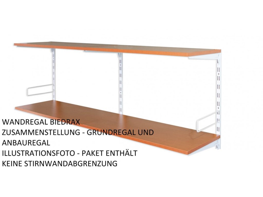 - Obsah balenia prídavný regál: 1 kovová nástenná lišta, kovové nosníky pod policu, polica drevotrieska lamino 18 mm, skrutky pre pripevnenie políc k nosníkom