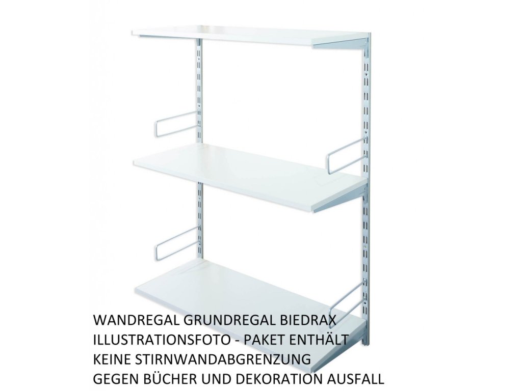 - Obsah balenia prídavný regál: 1 kovová nástenná lišta, kovové nosníky pod policu, polica drevotrieska lamino 18 mm, skrutky pre pripevnenie políc k nosníkom