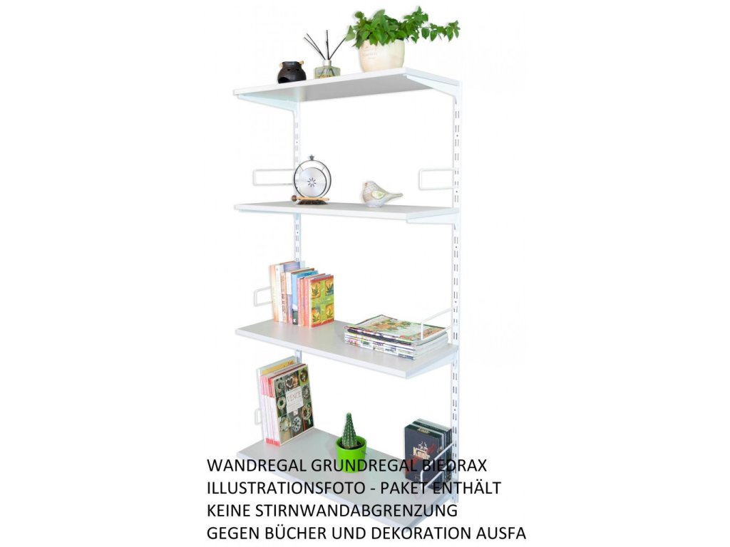 - Obsah balenia prídavný regál: 1 kovová nástenná lišta, kovové nosníky pod policu, polica drevotrieska lamino 18 mm, skrutky pre pripevnenie políc k nosníkom