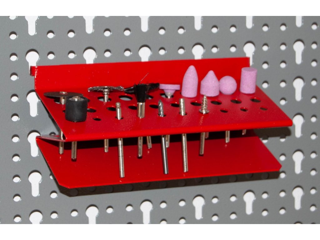 držiak 24 ks vrtákov do dielne pre prehľadné uloženie vrtákov podľa veľkosti, držiak vrtákov k nástennému panelu z našej ponuky