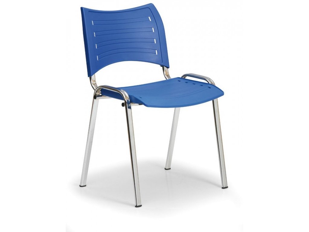 Konferenčná plastová stolička, modrá Biedrax Z9130m, chrómované nohy