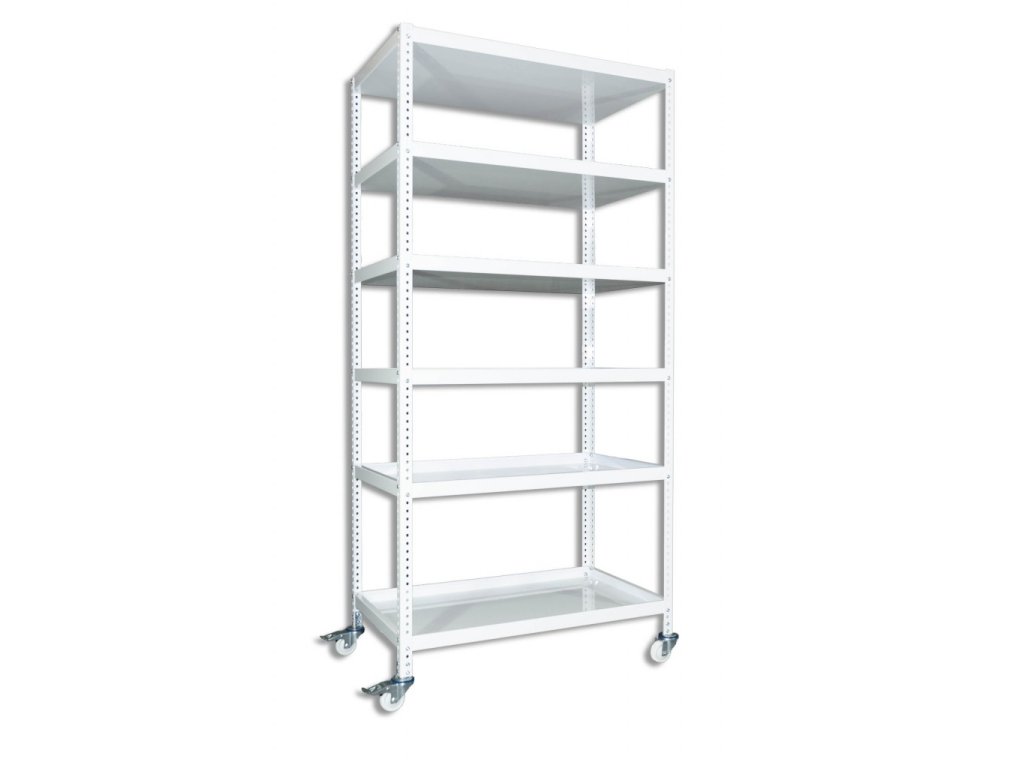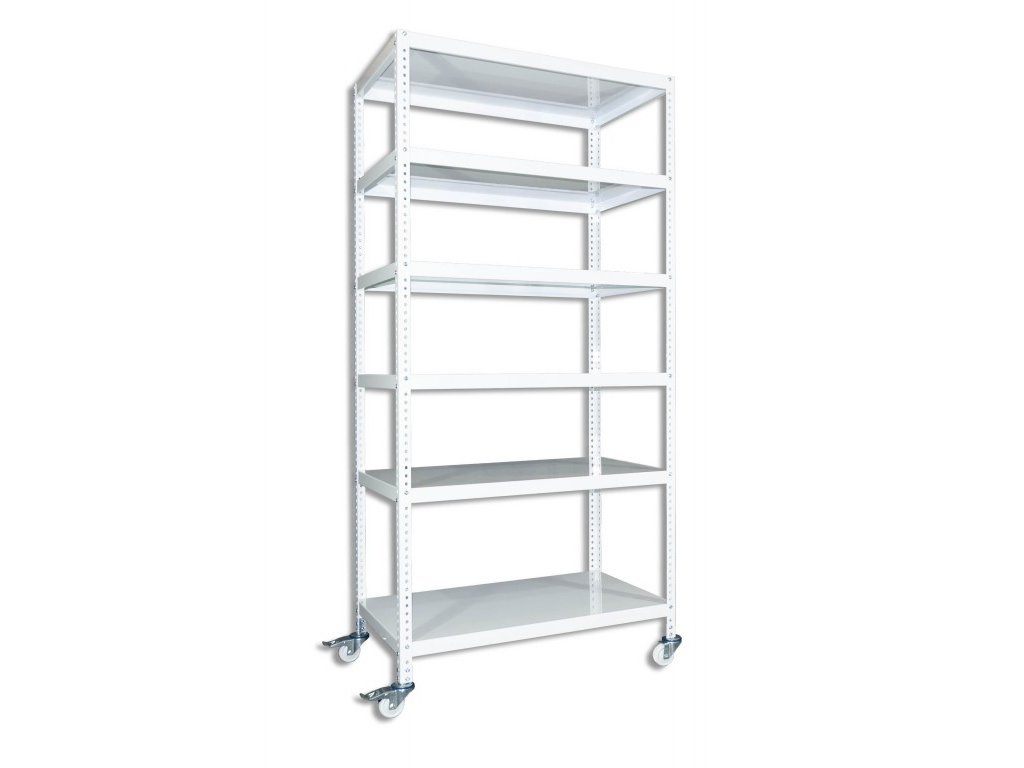 Pojazdný regál s kolieskami Biedrax 75 x 150 x 190 cm, 6 políc - biely