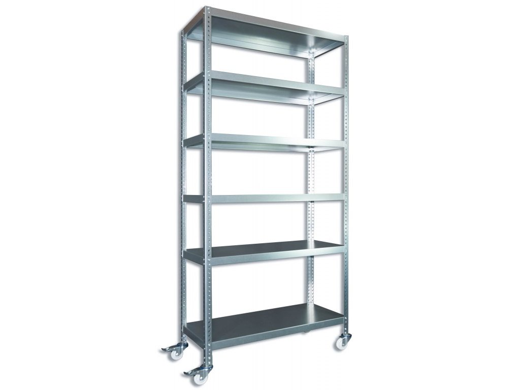 Pojazdný regál s kolieskami Biedrax, pozink - 50 x 150 x 190 cm, 6 políc