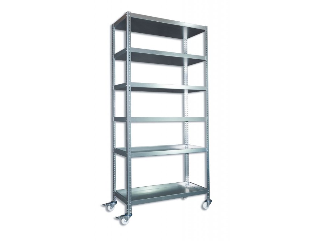 Pojazdný regál s kolieskami Biedrax, pozink - 60 x 150 x 190 cm, 6 políc