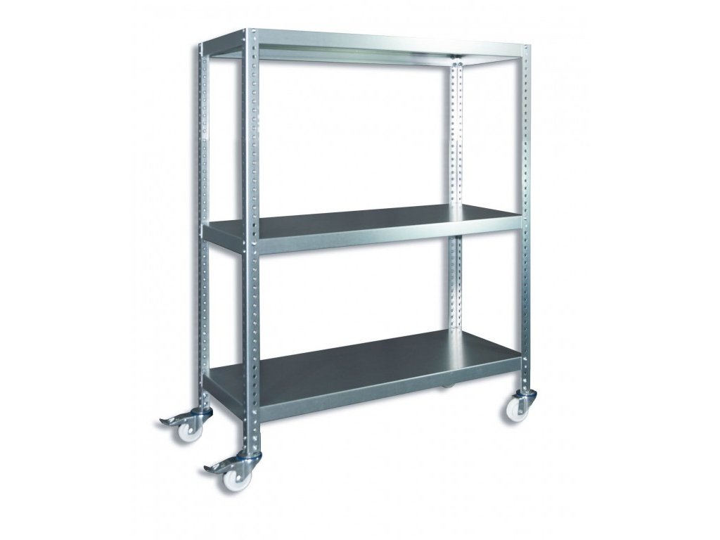 Pojazdný regál s kolieskami Biedrax, pozink - 75 x 150 x 130 cm, 3 police
