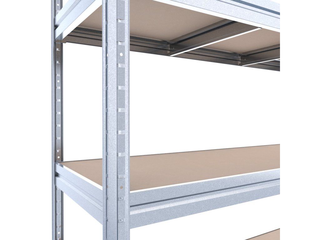 Veľký policový regál Biedrax 60 x 200 x 180 cm, pozink, 4 police MDF, nosnosť 350 kg na policu