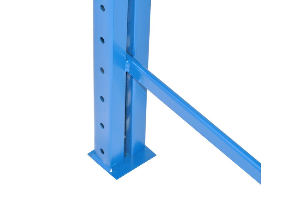 Základné profesionálne regály Biedrax tvoria dva regálové rámy, regálové nosníky, výstuhy pod policu a drevotriesková doska hrúbky 18mm. Regálový rám sa skladá z dvoch stojok z perforovaného valcovaného profilu, tieto sú spojené priečkami z valcovaných profilov vo vodorovnej a v šikmej polohe, všetko je zvarené v ochrannej atmosfére a lakované ako jeden diel. Na konci každej stojky je privarená pätka pre ukotvenie regálového rámu k pevnému podkladu Prídavné profesionálne regály Biedrax sú rovnaké ako základné profesionálne regály Biedrax - s jedným rozdielom, a to, že sú tvorené jedným regálovým rámom, nosníky prídavného paletového regálu sa zasúvajú do základného paletového regálu.To znamená, že ak potrebujete postaviť 5 regálov za sebou,kúpite si 1 základný profesionálny regál a 4 prídavné profesionálne regály.- Výška regálu 250 cm