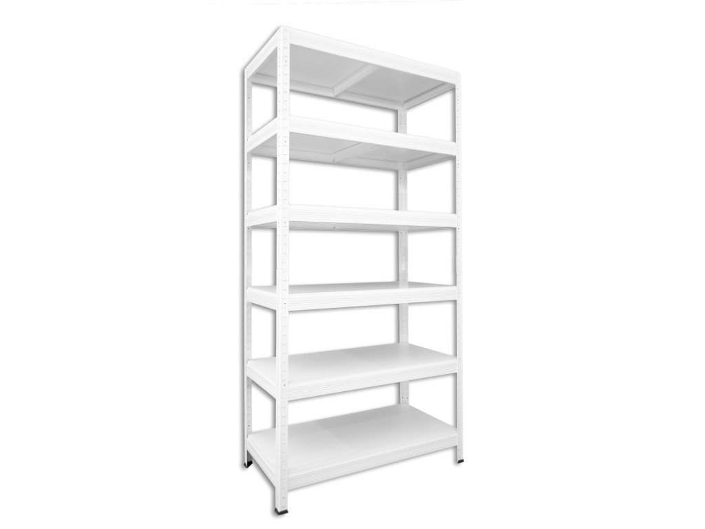 Kovový regál do domácnosti Biedrax 35 x 75 x 180 cm, biely - 6 políc biele lamino 12mm