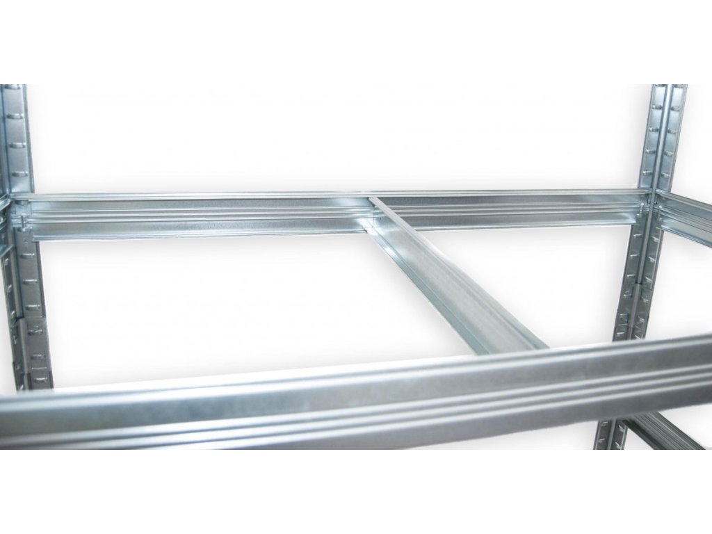 Kovové regály - kovová konštrukcia, police biela laminovaná drevotrieska 12 mm, ohranená ABS hranou zo všetkých strán. Police regálu preto sú odolnejšie proti vlhkosti. Údržbu regálov môžete robiť vlhkou handrou, ale nezabudnite na konci utrieť police do sucha . Regály sa jednoducho a rýchlo montujú, nosníky nasadíte do stojin a klepnutím dorazíte diely na doraz. Tento regálový systém je veľmi stabilný - žiadne skrutky! Regály sú vhodné do suchej pivnice, na pôdy, do skladov, do predajni, do dielne, do archívov
