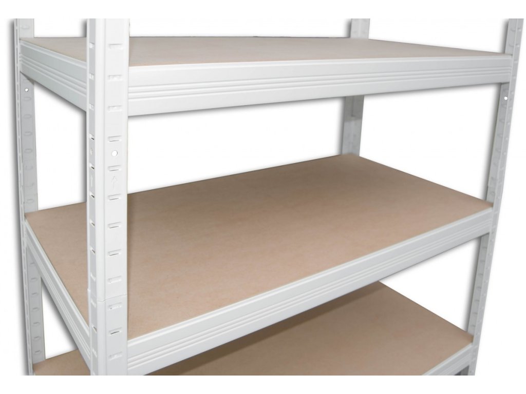 Kovové regály - kovová konštrukcia, police zo stredne husté drevovláknité dosky - skrátene MDF, tieto dosky patria k prírodným materiálom. MDF - drevovláknité dosky sa lisujú pod vysokým tlakom a sú na rozdiel od drevotrieskových políc pevnejšie. Ale pozor - police MDF nie sú vhodné do vlhkých priestor. Regály sa veľmi jednoducho skládajú - regálové nosníky zasuniete do stojin a poklepom gumovym kladivkom dorazíte diely na doraz. Tento regálový systém zaručuje vysokú stabilitu regálov, ale aj rýchlosť montáže regálov - žiadne skrutky! Regály sú vhodné do suchej pivnice, na pôdy, do skladov, do predajni, do dielne, do archívov