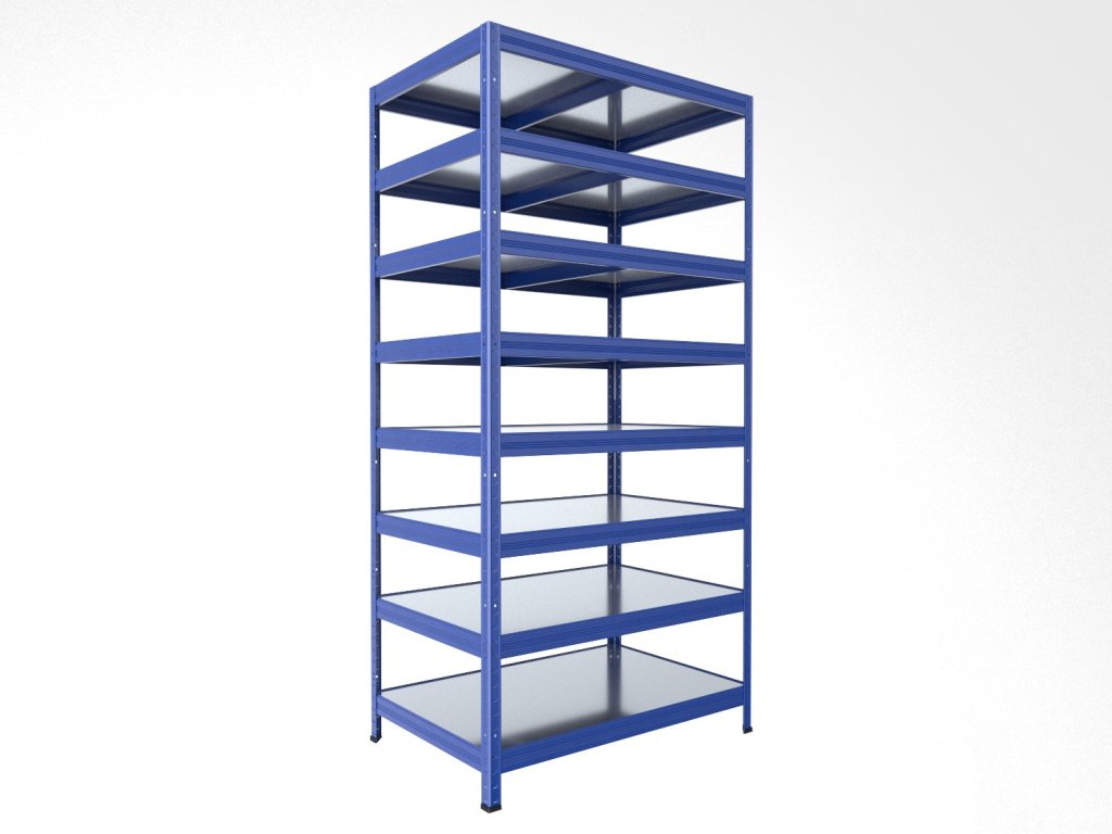 Regál do domácnosti Biedrax 50 x 75 x 240 cm, modrý, 8 políc plech zinok, nosnosť 150 kg na policu