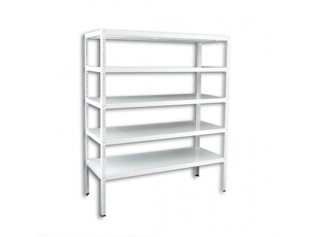 Kovový regál do domácnosti Biedrax s kovovými policami, skrutkovaný 50 x 150 x 150 cm, 5 políc - biely