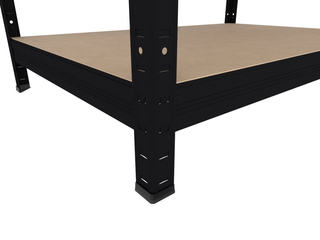 Kovové regály - kovová konštrukcia, police zo stredne husté drevovláknité dosky - skrátene MDF, tieto dosky patria k prírodným materiálom. MDF - drevovláknité dosky sa lisujú pod vysokým tlakom a sú na rozdiel od drevotrieskových políc pevnejšie. Ale pozor - police MDF nie sú vhodné do vlhkých priestor. Regály sa veľmi jednoducho skládajú - regálové nosníky zasuniete do stojin a poklepom gumovym kladivkom dorazíte diely na doraz. Tento regálový systém zaručuje vysokú stabilitu regálov, ale aj rýchlosť montáže regálov - žiadne skrutky! Regály sú vhodné do suchej pivnice, na pôdy, do skladov, do predajni, do dielne, do archívov