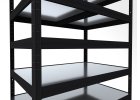 Kovové regály - kovová konštrukcia, police zo stredne husté drevovláknité dosky - skrátene MDF, tieto dosky patria k prírodným materiálom. MDF - drevovláknité dosky sa lisujú pod vysokým tlakom a sú na rozdiel od drevotrieskových políc pevnejšie. Ale pozor - police MDF nie sú vhodné do vlhkých priestor. Regály sa veľmi jednoducho skládajú - regálové nosníky zasuniete do stojin a poklepom gumovym kladivkom dorazíte diely na doraz. Tento regálový systém zaručuje vysokú stabilitu regálov, ale aj rýchlosť montáže regálov - žiadne skrutky! Regály sú vhodné do suchej pivnice, na pôdy, do skladov, do predajni, do dielne, do archívov