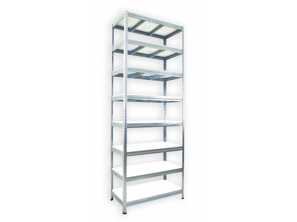 Kovový regál do pivnice Biedrax 35 x 90 x 240 cm, pozinkovaný - 8 políc biele lamino 12mm, 300 kg