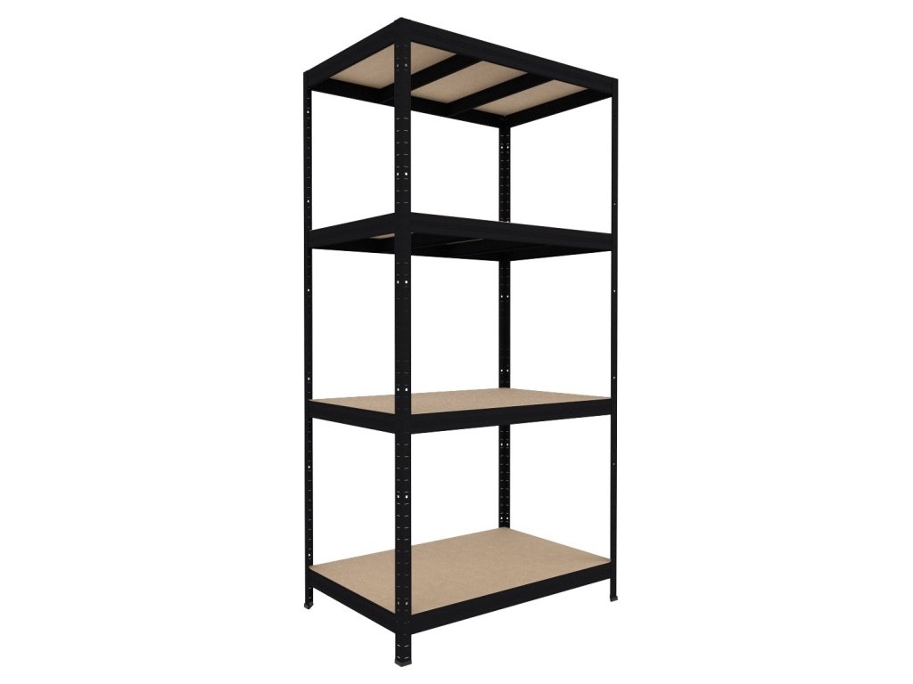 Kovový regál do pivnice Biedrax 45 x 90 x 180 cm, čierny - 4 police MDF, 300 kg