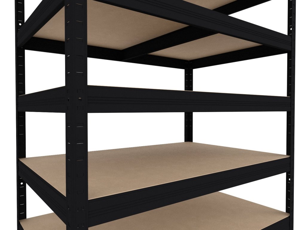 Kovové regály - kovová konštrukcia, police zo stredne husté drevovláknité dosky - skrátene MDF, tieto dosky patria k prírodným materiálom. MDF - drevovláknité dosky sa lisujú pod vysokým tlakom a sú na rozdiel od drevotrieskových políc pevnejšie. Ale pozor - police MDF nie sú vhodné do vlhkých priestor. Regály sa veľmi jednoducho skládajú - regálové nosníky zasuniete do stojin a poklepom gumovym kladivkom dorazíte diely na doraz. Tento regálový systém zaručuje vysokú stabilitu regálov, ale aj rýchlosť montáže regálov - žiadne skrutky! Regály sú vhodné do suchej pivnice, na pôdy, do skladov, do predajni, do dielne, do archívov