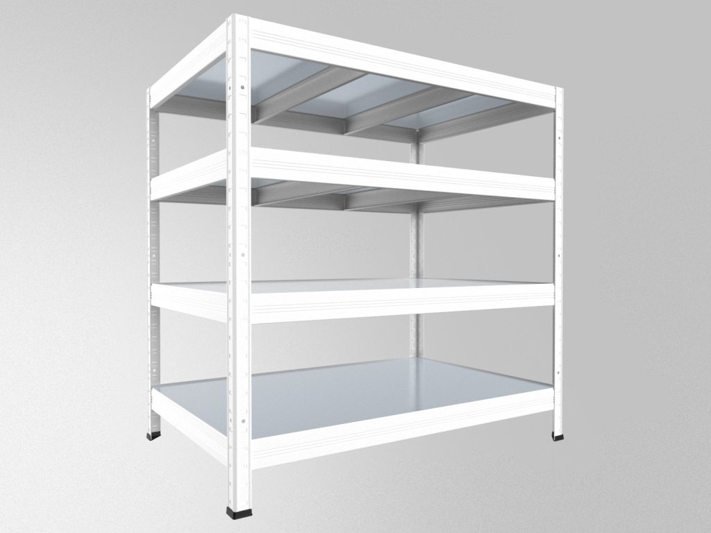 - PROSÍM POZOR - kovové stojky, nosníky a výstuhy sú lakované vypalovacou práškovou farbou biela RAL9003. Ale police sú vyrobené z pozinkovaného plechu 0,8 mm, nie sú lakované práškovou farbou, jedná sa o pozinkovaný strieborný plech