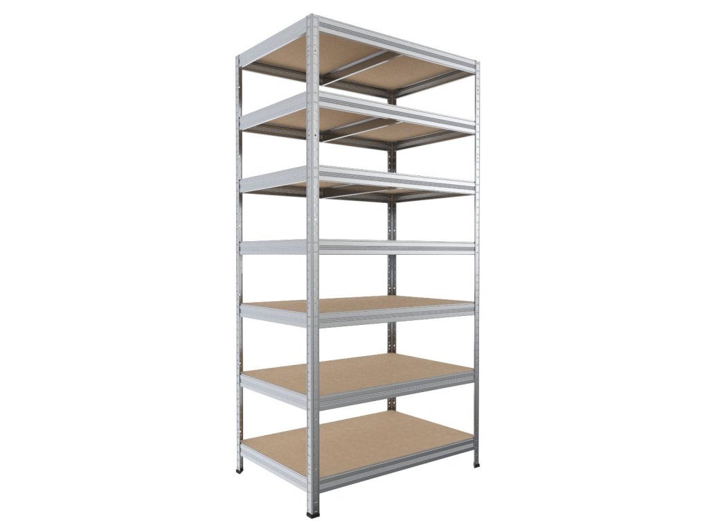 Kovové regály - kovová konštrukcia, police zo stredne husté drevovláknité dosky - skrátene MDF, tieto dosky patria k prírodným materiálom. MDF - drevovláknité dosky sa lisujú pod vysokým tlakom a sú na rozdiel od drevotrieskových políc pevnejšie. Ale pozor - police MDF nie sú vhodné do vlhkých priestor. Regály sa veľmi jednoducho skládajú - regálové nosníky zasuniete do stojin a poklepom gumovym kladivkom dorazíte diely na doraz. Tento regálový systém zaručuje vysokú stabilitu regálov, ale aj rýchlosť montáže regálov - žiadne skrutky! Regály sú vhodné do suchej pivnice, na pôdy, do skladov, do predajni, do dielne, do archívov