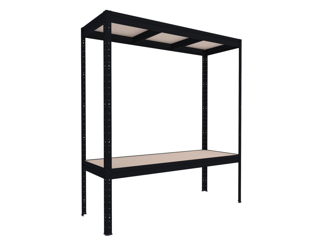 Veľký regál do skladu Biedrax 60 x 240 x 180 cm, čierny, 2 police MDF, nosnosť 300 kg na policu