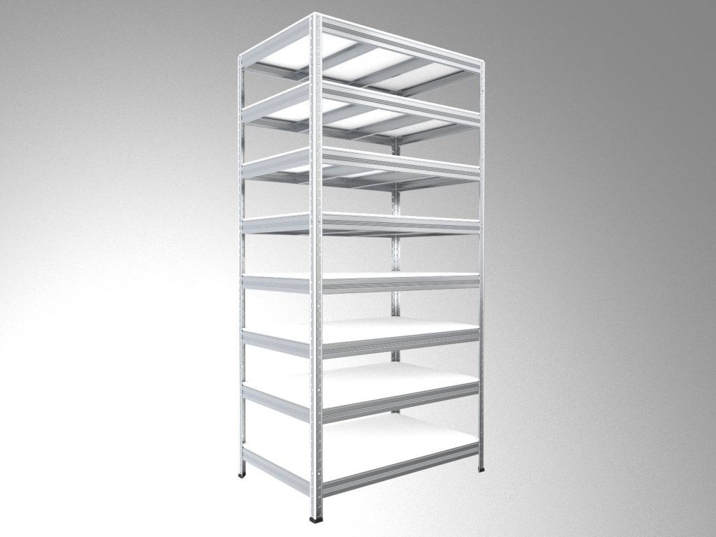 Kovový regál do špajze Biedrax 60 x 90 x 270 cm, pozinkovaný - 8 políc biele lamino 12mm, 300 kg