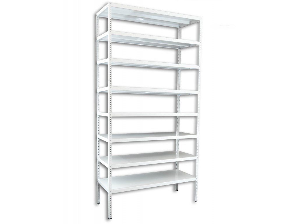 Kovový regál do špajze Biedrax s kovovými policami, skrutkovaný 50 x 130 x 250 cm, 8 políc - biely