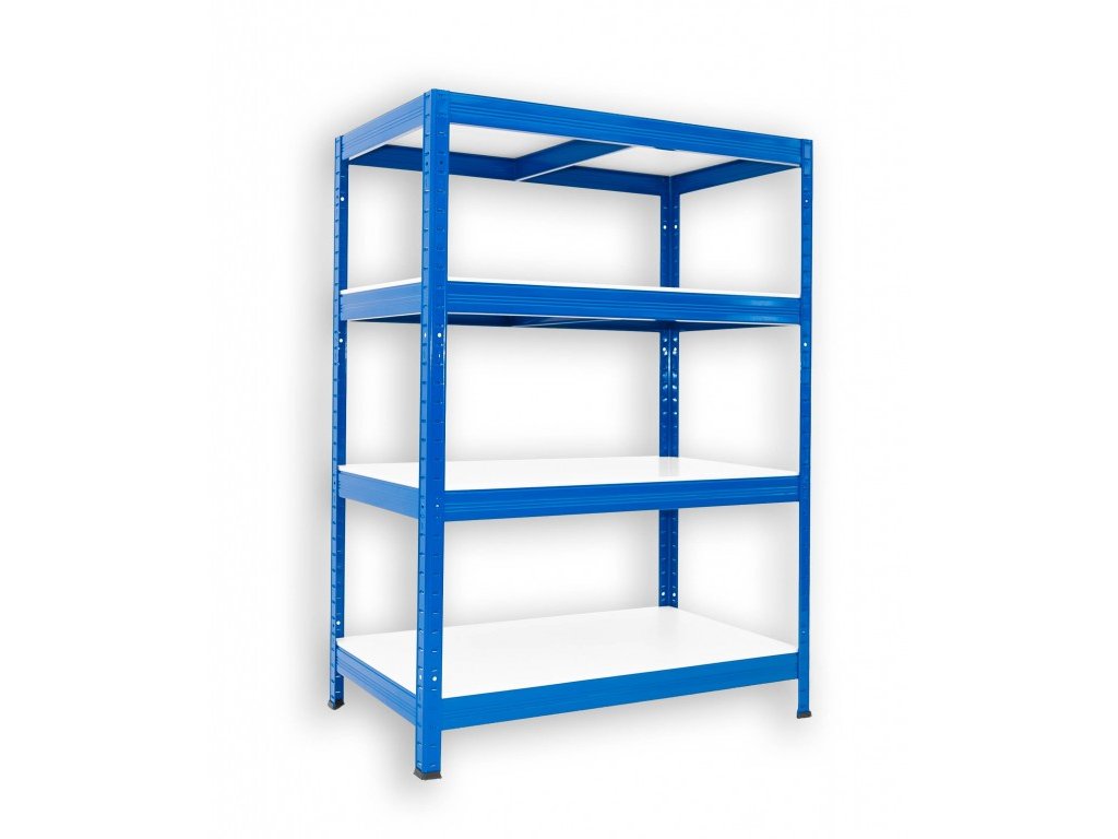 Kovový regál do technickej miestnosti Biedrax 45 x 75 x 90 cm, modrý - 4 police biele lamino 12mm