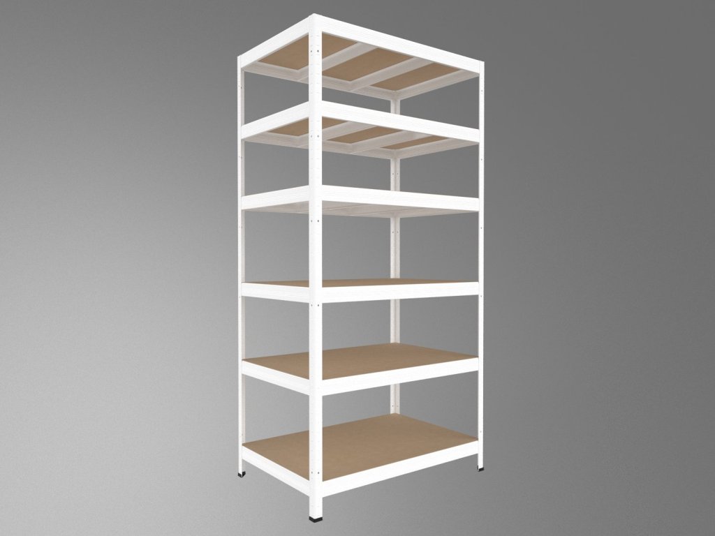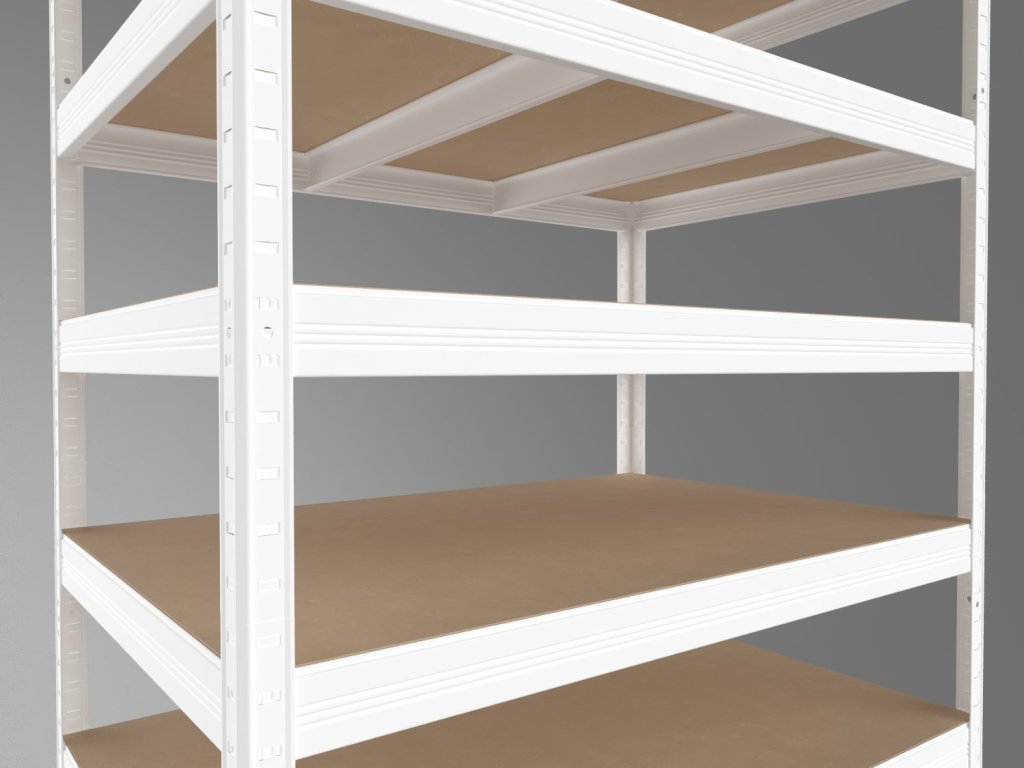Regál do technickej miestnosti s policami z MDF dosiek, ktoré sú vyrábané pod vysokým tlakom bez použitia lepidiel. Tento ekologický materiál zaisťuje vysokú odolnosť a stabilitu. Unikátny bezskrutkový systém montáže umožňuje rýchle zostavenie – nosníky stačí zasunúť do stojín a zaistiť ľahkým poklepaním. Pevné spojenie bez skrutiek zaručuje tuhosť celej konštrukcie. Upozornenie: MDF police sú vhodné iba do suchých priestorov.