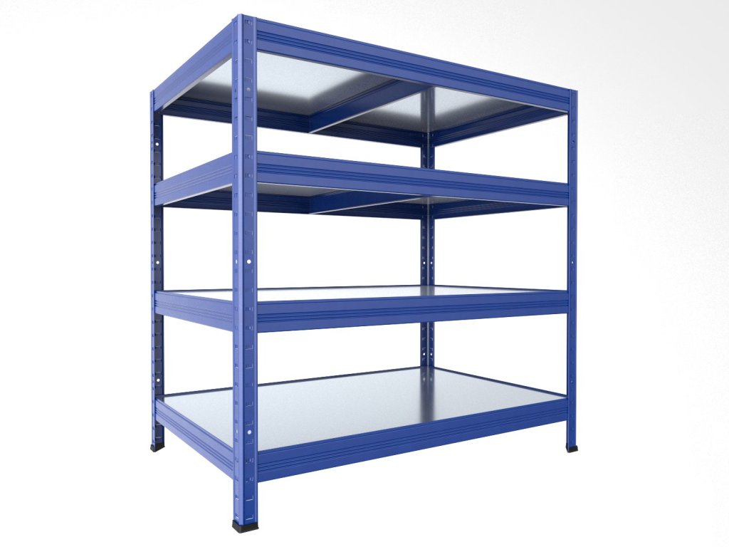- PROSÍM POZOR - kovové stojky, nosníky a výstuhy sú lakované vypalovacou práškovou farbou modrá RAL5010. Ale police sú vyrobené z pozinkovaného plechu 0,8 mm, nie sú lakované práškovou farbou, jedná sa o pozinkovaný strieborný plech