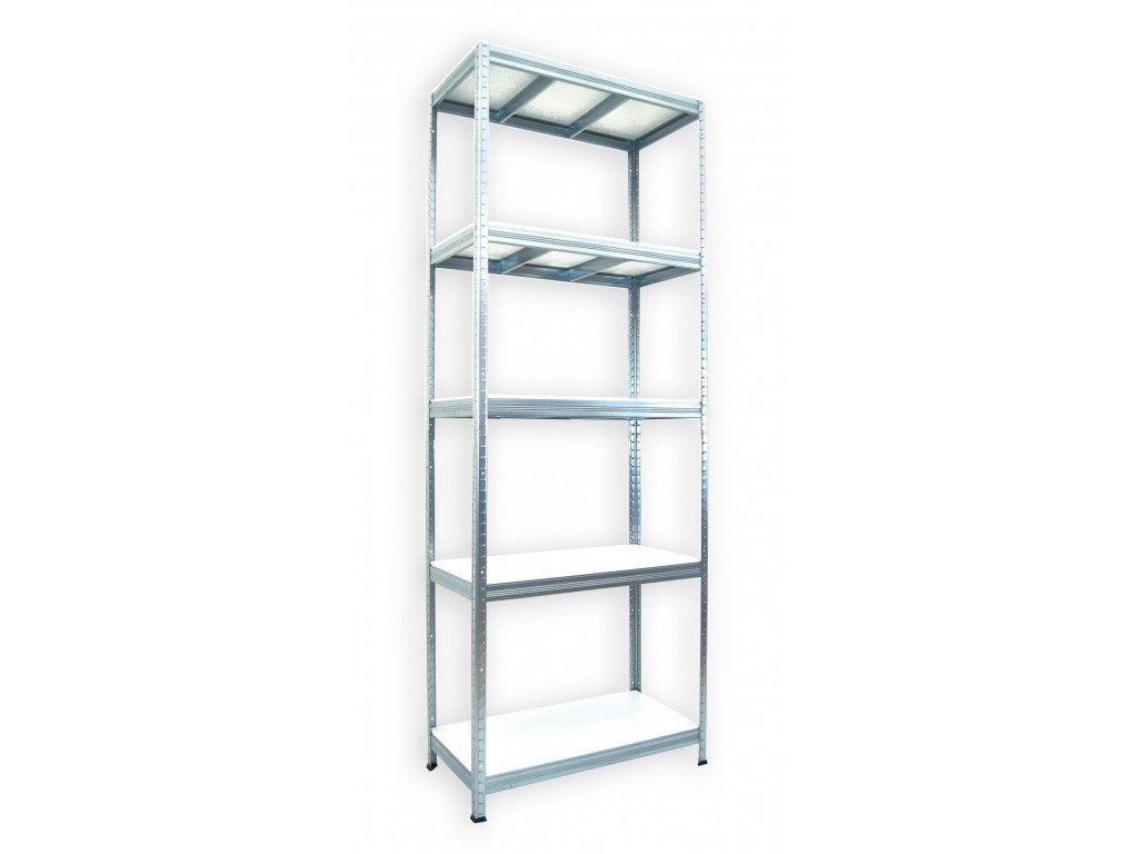 Kovový regál Biedrax 35 x 75 x 210 cm, pozinkovaný - 5 políc biele lamino 12mm, 300 kg