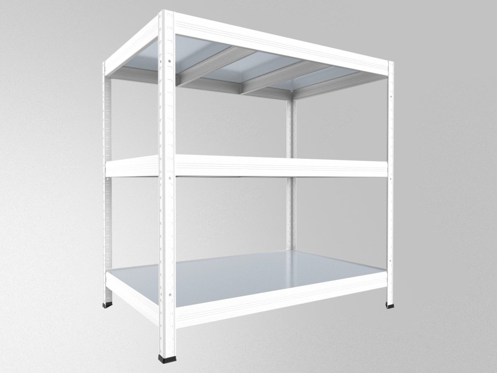 - PROSÍM POZOR - kovové stojky, nosníky a výstuhy sú lakované vypalovacou práškovou farbou biela RAL9003. Ale police sú vyrobené z pozinkovaného plechu 0,8 mm, nie sú lakované práškovou farbou, jedná sa o pozinkovaný strieborný plech